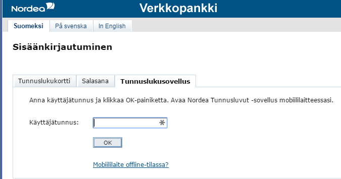 Tunnuslukusovellus Nordearahoitus Fi