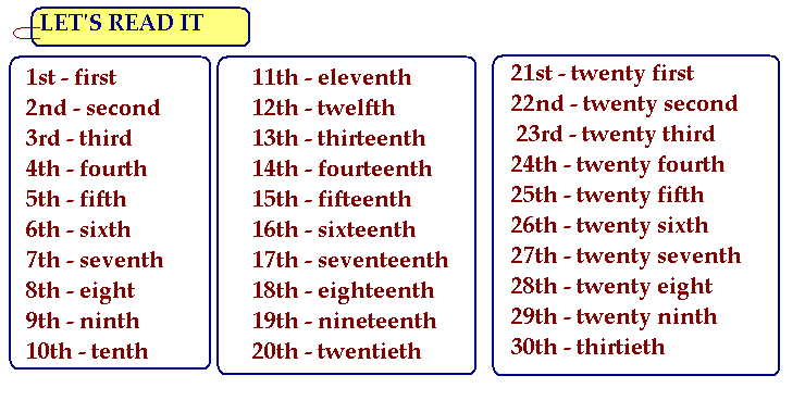 Numeros Ordinales En Ingles Hasta El 31