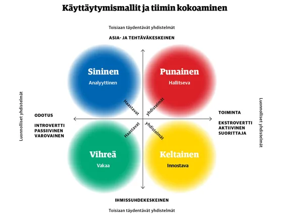 Tämä persoonallisuustesti kertoo mikä väri kuvaa persoonallisuuttasi parhaiten kirjassa esitellään neljä erilaista persoonallisuutta punainen keltainen vihreä ja sininen. Punainen ja sininen tyyppi ovat tehtäväorientoituneita. Kirjassa esitellään neljä erilaista persoonallisuutta punainen keltainen vihreä ja sininen. Kaksi ensimmäistä väriä edustavat ulospäin suuntautuneita ekstroverttejä ja kaksi jälkimmäistä sisäänpäin suuntautuneita introvertteja temperamentteja.